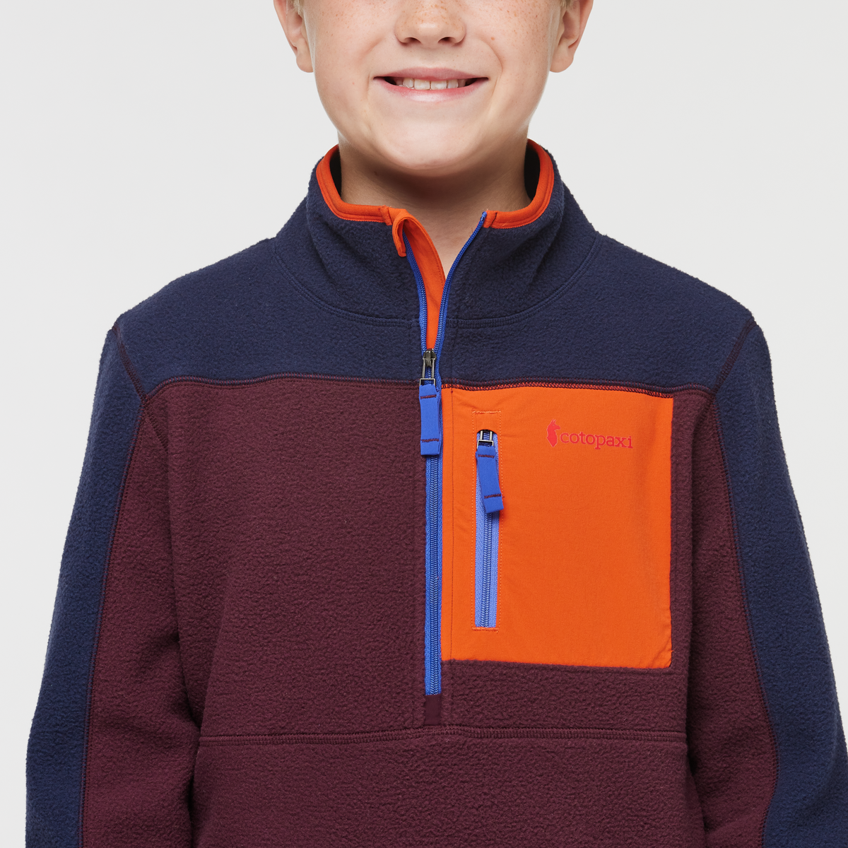 The cozy Kids’ Abrazo Half Zip Fleece Jacket puts a Cotopaxi spin on the classic fleece pullover with nature inspired colorblocking and 100% recycled fleece. This style is unisex.