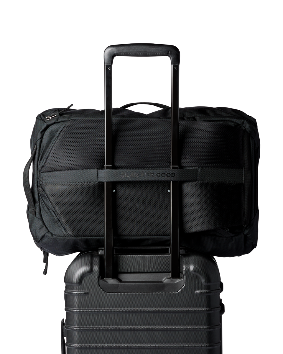 New features include better weight distribution and air mesh shoulder straps for an ultra comfortable carry, an exterior stretch water bottle pocket, and a luggage pass through strap that easily slides over the handle of a roller bag (like our Allpa Roller Bags). Most importantly, our Allpas are now made with 100% recycled fabrics.