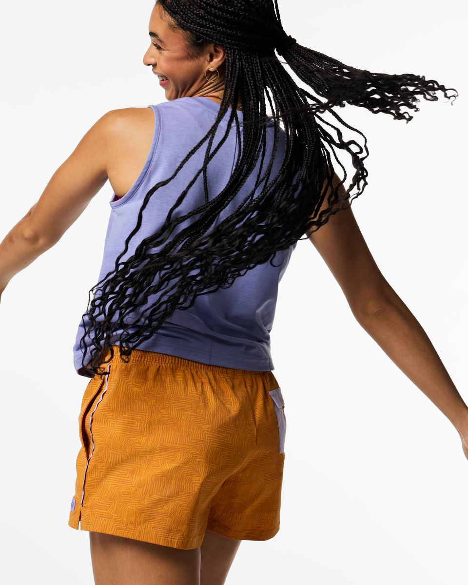 Hop in the river or toss a frisbee around camp the Brinco Short keeps up with it all. The recycled nylon spandex blend with a wicking finish transitions seamlessly from beach to trail to farmers market.