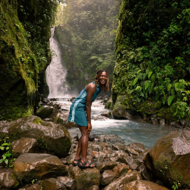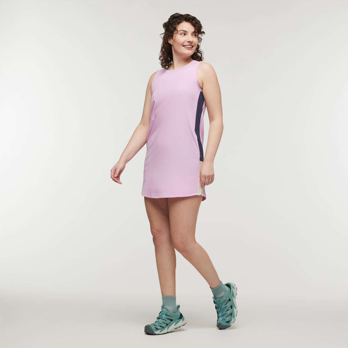 Change it up with a lightweight dress that can handle it all, from farmers’ market jaunts and dog walks to the longest of travel days. Made from an anti static, wrinkle resistant recycled polyester blend, this racerback dress is designed to be worn over a sports bra, with a mid thigh length perfect for all day wear.