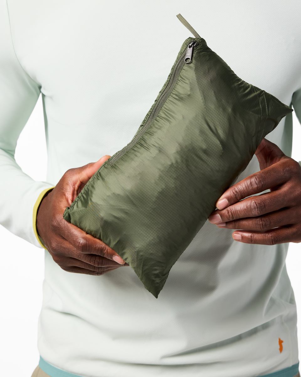Packs inside its own interior chest pocket