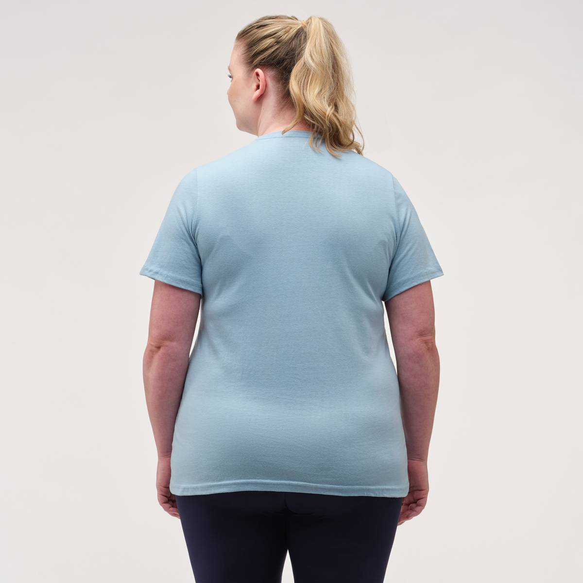 Softer on your skin and softer on our planet with an organic cotton recycled polyester blend. Also available in Men’s.