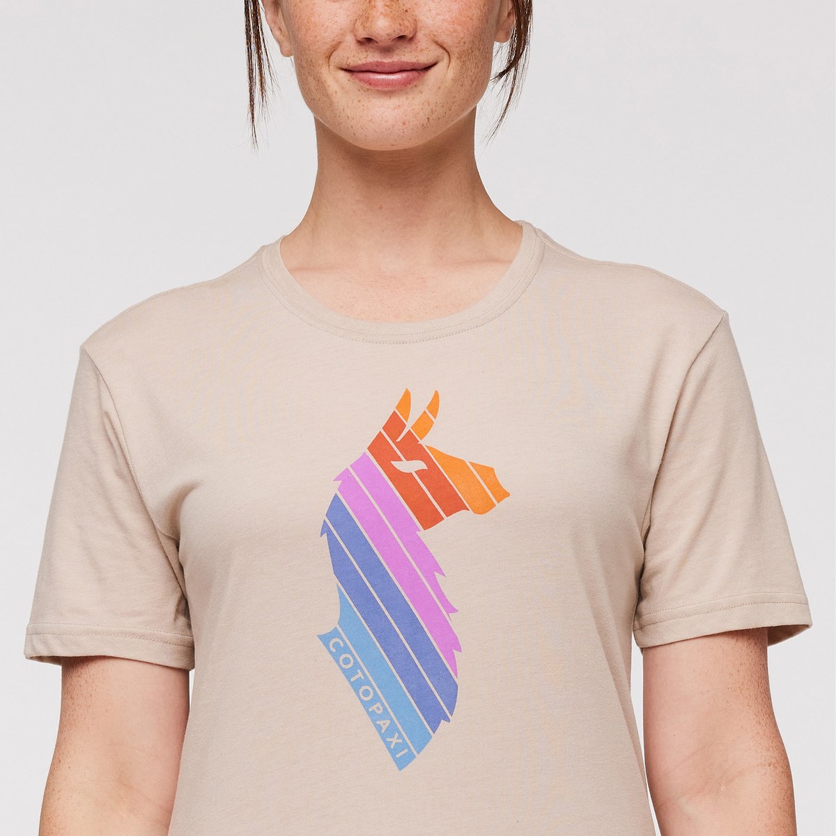 A comfy tee featuring a classic llama and bold stripes. Our super soft t shirt is also softer on the planet.