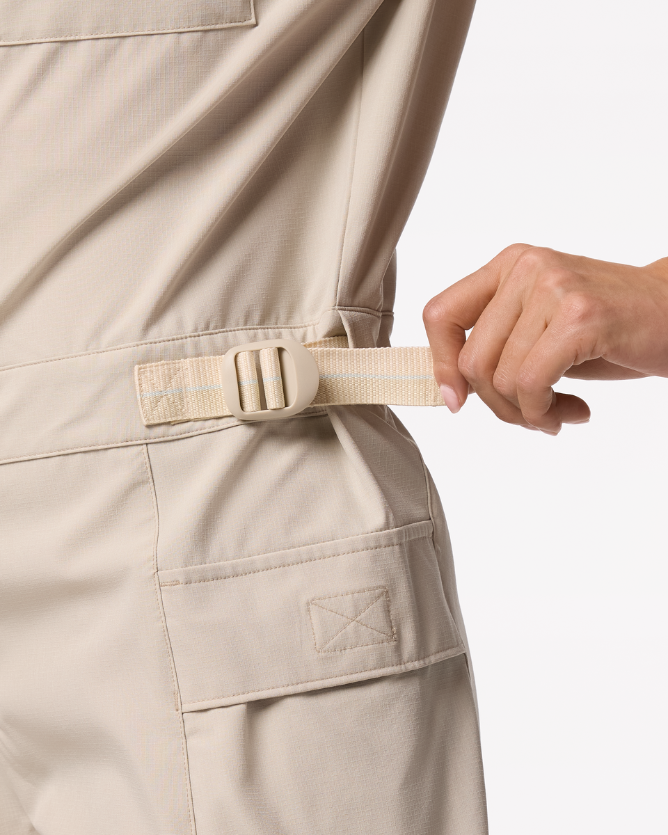 Hikes, brews, or summit picnics the Losdos Romper can handle it all. This trail to town romper merges style and utility, with a stretchy and breathable recycled polyester and spandex construction, and spacious cargo pockets to stash snacks or devices. The center front zip makes for easy on and off, and the adjustable waistline lets you switch up your fit.