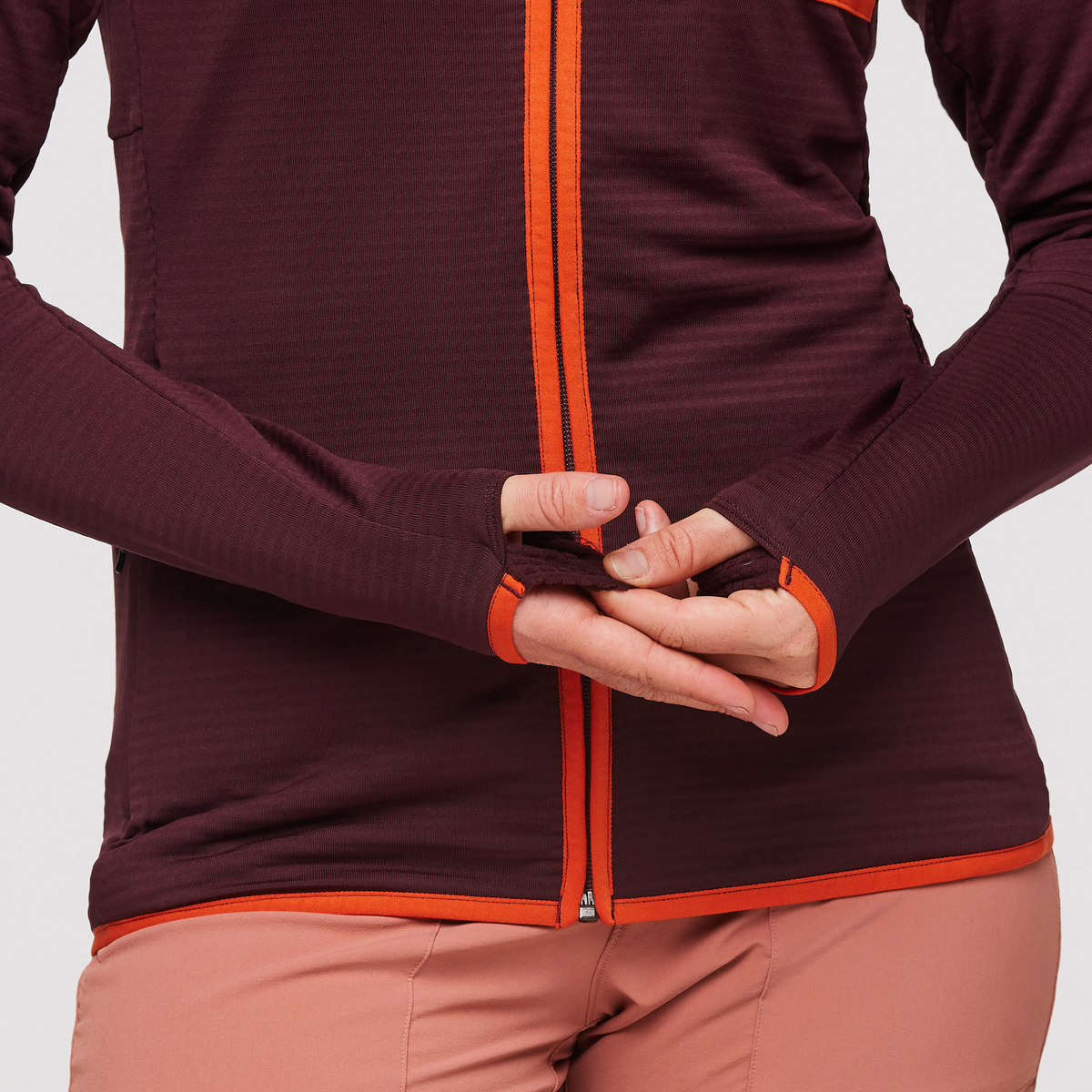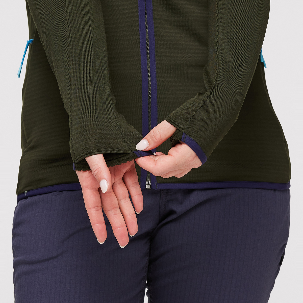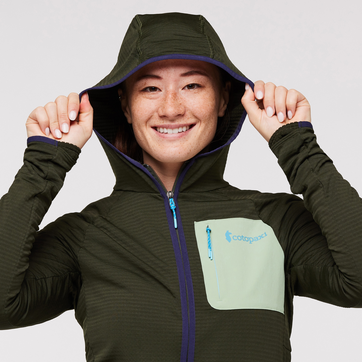 A fleece fit for movement, the Otero Hooded Jacket features a fitted silhouette, a recycled polyester blend, a raised grid back for more warmth and breathability, and concealed zippers. This technical fleece is great for cool weather hikes or other adventures.