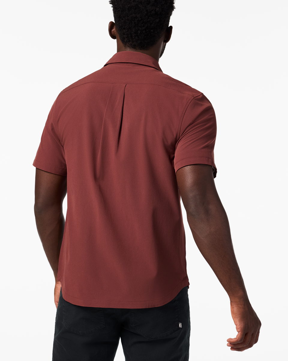 With the Pulso Tech Shirt, trail to tailgate transitions have never been easier. A technical short sleeve button down made from a recycled polyester spandex blend, this shirt features perforated fabric for breathability on the hottest summer days. A zippered chest pocket and sunglass loop keep your essentials within reach, while the inside front hem doubles as a sunglass wipe.