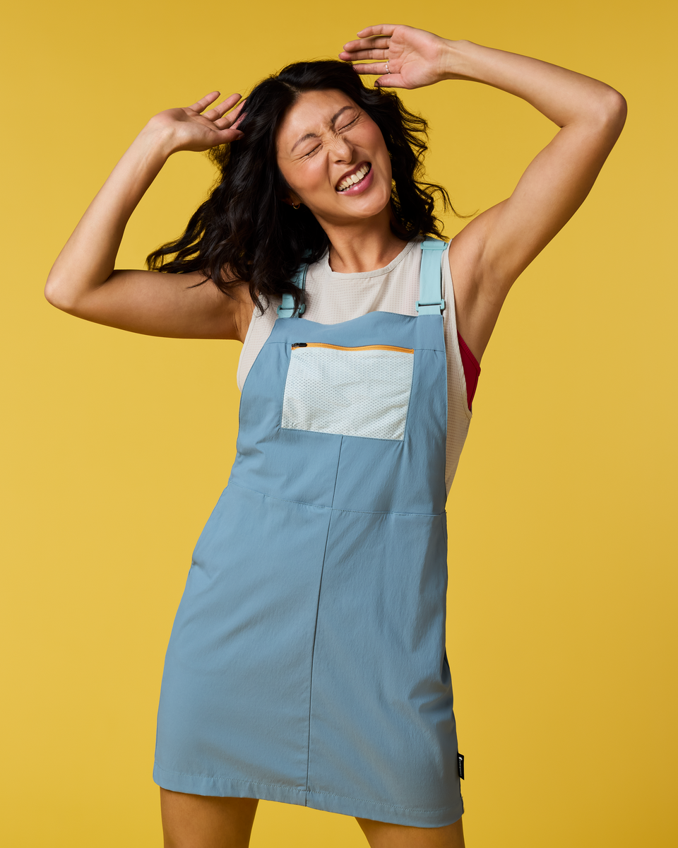 From the Andes and the PCT to your local trails, the Tolima Overall Dress is a playful yet practical fit you can wear over a tee, tank, or sports bra. With built in UPF 50+ protection, adjustable shoulder straps, and a zip chest pocket, this dress keeps you comfortable wherever your trail leads.